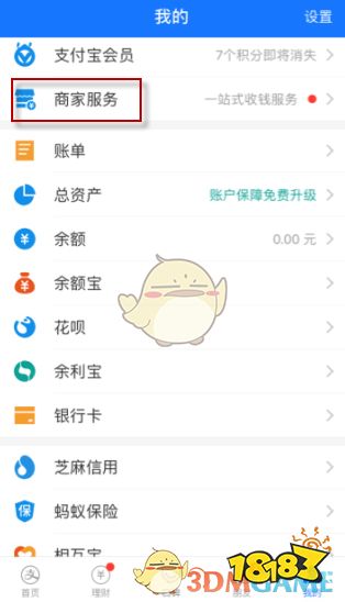 1、打开支付宝app的我的界面,点击“商家服务”;