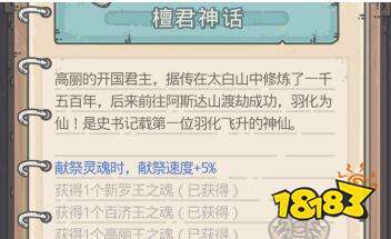 在高丽地图中,加快献祭的方法是获得道具檀君神话,檀君神话是高丽的特殊的贵重物品,檀君是高丽的创国之神,这个道具的作用是加快灵活献祭的速度,能将献祭速度提高5%,大大的缩短了献祭的时间。