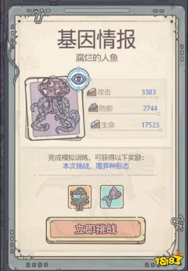 限定活尸形态,此基因训练奖励进化宝箱,总层数18层,难度较高。