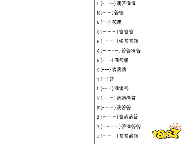它由两种基本信号和不同的间隔时间组成:短促的点信号" .",读" 的 "(Di);保持一定时间的长信号"—",读"答 "(Da)。(]间隔时间:滴,1t;答,3t;滴答间,1t;字母间,3t;字间,5t。