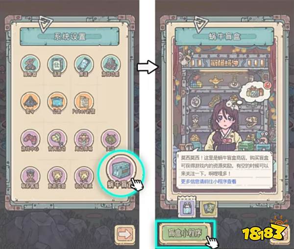 正式服的蜗爷们,可以在游戏内的系统设置中通过『蜗牛盲盒』界面,点击『盲盒小程序』进入!