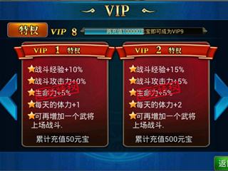 游戏的内政系统设有酒馆建筑,玩家每天有一次机会免费刷将。除此之外,战斗的俘虏和抓将任务同样是获得将士们的重要方法。如此众多的方式,众多武将的加入,将使得玩家的队伍变得更壮大。同时玩家仅需小小的投入便可成为VIP用户,免费增加上场武将的人数。平民玩家也能炫动的玩转战神无双。
